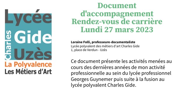 Loraine Folli, professeure-documentaliste Lycée polyvalent des métiers d'art Charles Gide 1, place de Verdun - Uzès