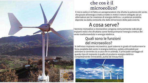 l termine minieolico o microeolico vengono comunemente indicati gli impianti eolici che sfruttano come fonte primaria l’energia cinetica del vento trasformandola in energia elettrica.