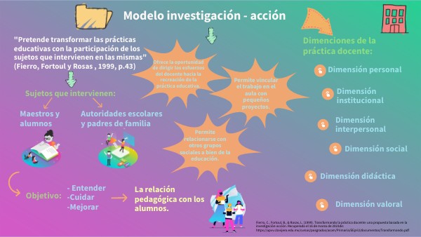 Fierro, C., Fortoul, B., & Rosas, L. (1999). Transformando la práctica docente: una propuesta basada en la investigación-acción. Recuperado el 16 de marzo de 2023de: https://upvv.clavijero.edu.mx/cursos/posgrados/acom/Primaria/EEpri2/documentos/Transformando.pdf