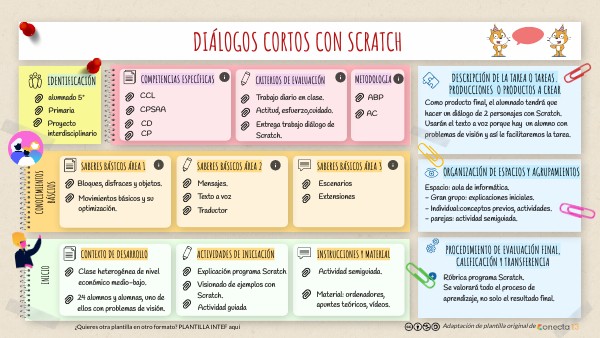 Como producto final, el alumnado tendrá que hacer un diálogo de 2 personajes con Scratch. Usarán el texto a voz porque hay un alumno con problemas de visión y así le facilitaremos la tarea.