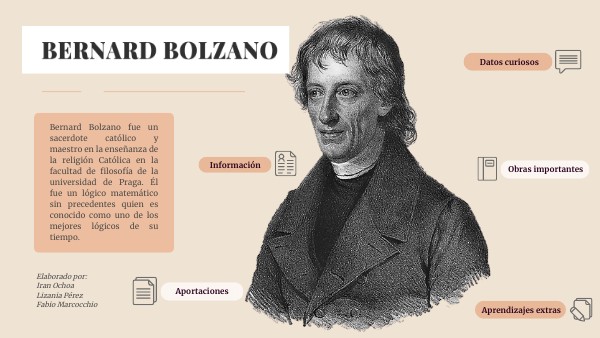 Bernard Bolzano fue un sacerdote católico y maestro en la enseñanza de la religión Católica en la facultad de filosofía de la universidad de Praga. Él fue un lógico matemático sin precedentes quien es conocido como uno de los mejores lógicos de su tiempo.