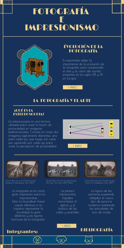 La fotografía sirvió como gran inspiración para los impresionistas. Estos no buscaban hacer copias idénticas si no lograra representar la movilidad, la gran distancia y las figuras borrosas de la fotografía