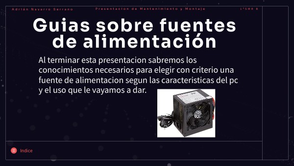 Al terminar esta presentacion sabremos los conocimientos necesarios para elegir con criterio una fuente de alimentacion segun las caracteristicas del pc y el uso que le vayamos a dar.