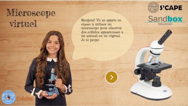 Bonjour! Tu as appris en classe à utiliser un microscope pour observer des cellules appartenant à un animal ou un végétal. Je te propose d'utiliser ce microscope virtuel pour réviser en t'amusant. Bonne séance!