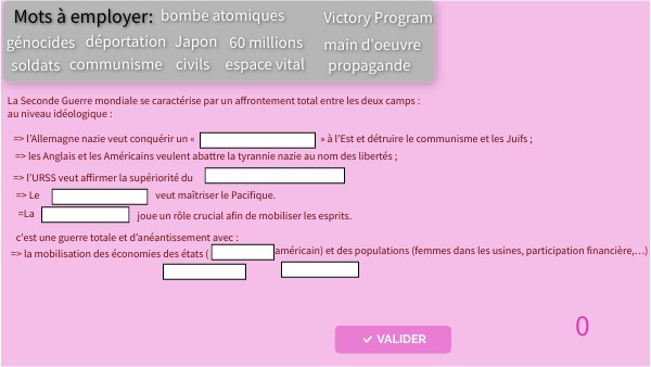 La Seconde Guerre mondiale se caractérise par un affrontement total entre les deux camps : au niveau idéologique :