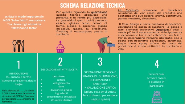 SPIEGAZIONE TEORICA E PRATICA DI: GUARNIZIONE, DECORAZIONE E FARCITURA+ VALUTAZIONE CRITICA (spiego cosa avrei potuto fare di diverso per rendere migliori i piatti)