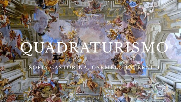 Il termine quadraturismo, come “quadraturista” e “quadratura”, deriva probabilmente dall’espressione “lavoro di quadro” usata dal Vasari con riferimento a tutto ciò per cui si “adopera la squadra e le seste” e, a cominciare dal Seicento, con riferimento alla rappresentazione di elementi e spazi architettonici.Il quadraturismo comprende tutte le forme pittoriche che trasformano lo spazio, i trompe l’oeil, le anamorfosi, le quadrature. Fusioni mirabili tra pittura e architettura inventate addirittura dai Romani, duemila anni fa.