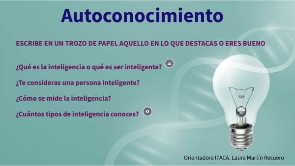 ESCRIBE EN UN TROZO DE PAPEL AQUELLO EN LO QUE DESTACAS O ERES BUENO ¿Qué es la inteligencia o qué es ser inteligente? ¿Te consideras una persona inteligente? ¿Cómo se mide la inteligencia? ¿Cuántos tipos de inteligencia conoces?