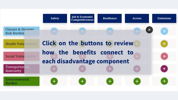 Click on the buttons to review how the benefits connect to each disadvantage component