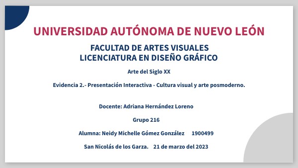 Arte del Siglo XX Evidencia 2.- Presentación Interactiva - Cultura visual y arte posmoderno.