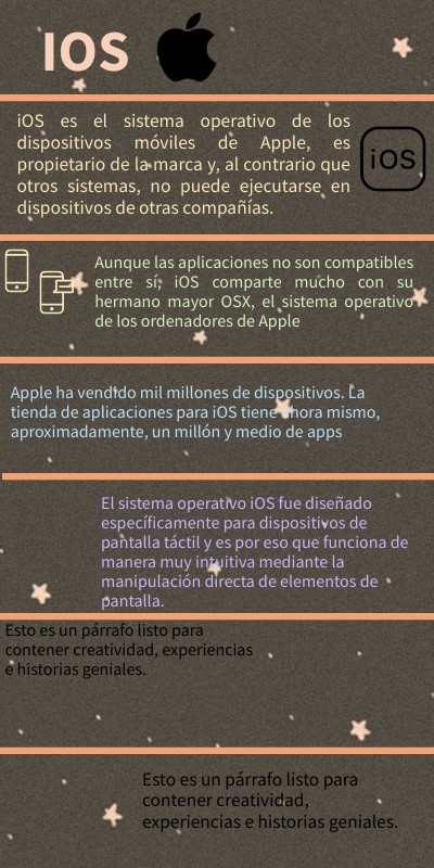 iOS es el sistema operativo de los dispositivos móviles de Apple, es propietario de la marca y, al contrario que otros sistemas, no puede ejecutarse en dispositivos de otras compañías.