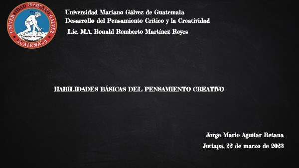 Universidad Mariano Gálvez de Guatemala Desarrollo del Pensamiento Crítico y la Creatividad Lic. M.A. Ronald Remberto Martínez Reyes