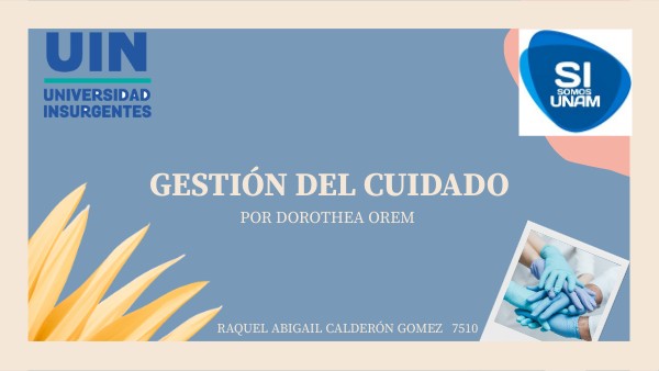 La Teoría de Autocuidado o Cuidado de Enfermería está compuesta por tres teorías interrelacionadas: (1) la teoría del déficit autocuidado (2) la teoría del déficit de autocuidado (3) la teoría de los sistemas de enfermería