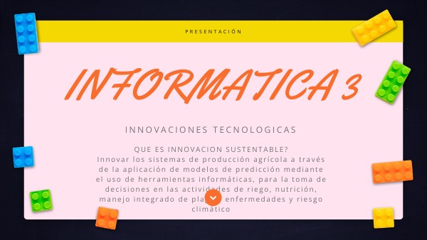 QUE ES INNOVACION SUSTENTABLE?Innovar los sistemas de producción agrícola a través de la aplicación de modelos de predicción mediante el uso de herramientas informáticas, para la toma de decisiones en las actividades de riego, nutrición, manejo integrado de plagas, enfermedades y riesgo climático