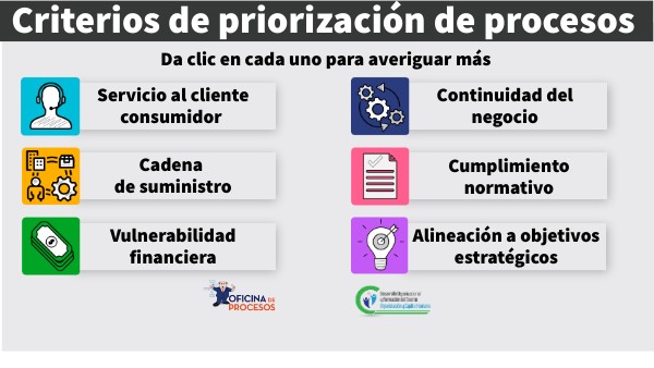 Criterios para la priorización de procesos