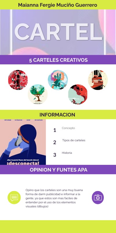 Opino que los carteles son una muy buena forma de darm publicidad e informar a la gente, ya que estos son mas faciles de entender por el uso de los elementos visuales (dibujos)