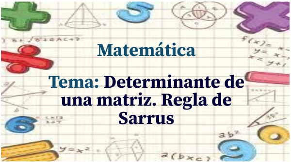 Se obtiene de restar la multiplicación de los elementos de la diagonal principal de la matriz y la multiplicación de los elementos de la diagonal secundaria de la misma matriz. Para poder realizar este cálculo necesitamos una matriz cuadrada de orden m x n, donde m son las filas y n las columnas, siendo siempre m=n. Esto es lo que llamamos dimensión de la matriz. Para matrices de orden superior a 2 x 2, el cálculo se realiza mediante las reglas de Laplace o Sarrus.