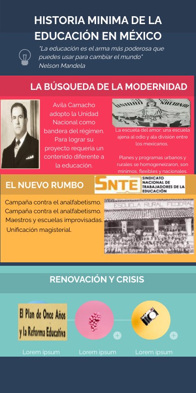 Avila Camacho adopto la Unidad Nacional como bandera del régimen. Para lograr su proyecto requeria un contenido diferente a la educación.