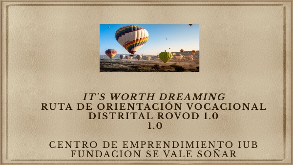 It's worth dreaming RUTA DE ORIENTACIÓN VOCACIONAL DISTRITal rovod 1.0 1.0CENTRO DE EMPRENDIMIENTO IUB Fundacion se vale soñar