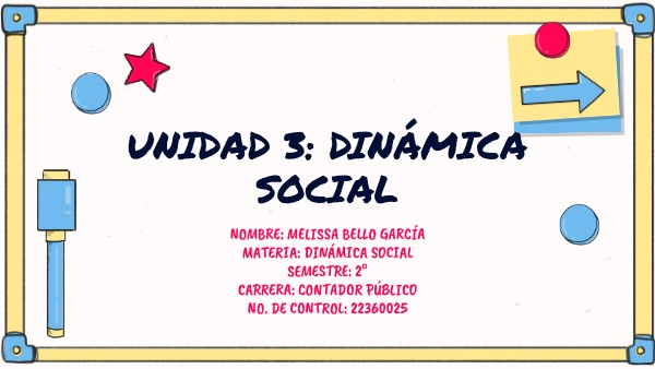 NOMBRE: MELISSA BELLO GARCÍAMATERIA: DINÁMICA SOCIAL SEMESTRE: 2° CARRERA: CONTADOR PÚBLICO NO. DE CONTROL: 22360025