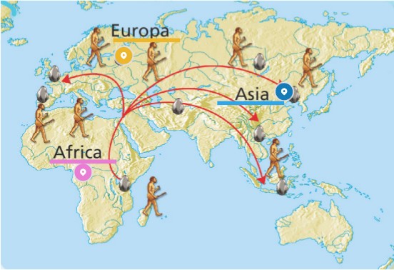 Africa --> homo Ergaster Asia --> homo Erectus Europa --> homo Heidelbergensis
