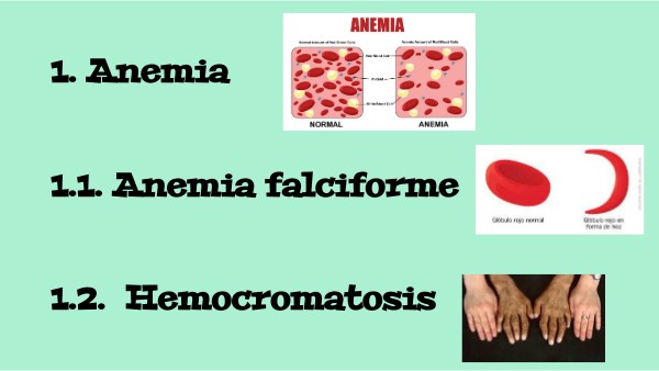 1. Anemia 1.1. Anemia falciforme 1.2. Hemocromatosis