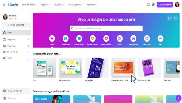 En la sección de proyectos encontrarás todos los documentos que creaste en canva.
