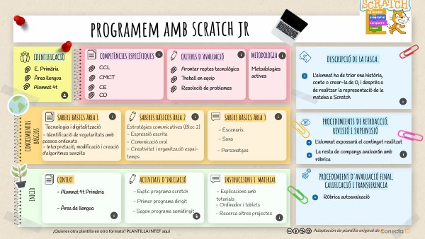 L'alumnat ha de triar una història, conte o crear-la de 0, i després a de realitzar la representació de la mateixa a Scratch