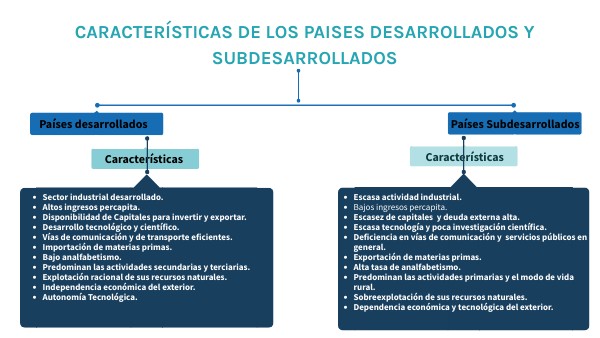 CARACTERÍSTICAS DE LOS PAISES DESARROLLADOS Y SUBDESARROLLADOS