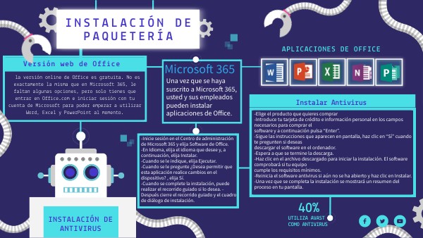 Infografía de como instalar aplicaciones de Microsoft Office y antivirus