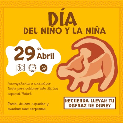 Acompañanos a una súper fiesta para celebrar este día tan especial. Habrá:Pastel, dulces, juguetes y muchas más sorpresas.