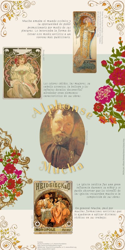 Fuentes: Mucha Foundation. (s. f.). Mucha Foundation. http://www.muchafoundation.org/en WikiArt.org - Visual Art Encyclopedia. (s. f.). www.wikiart.org. https://www.wikiart.org/es