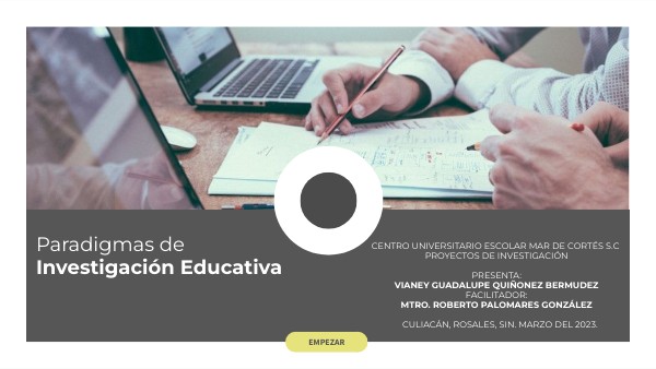 CENTRO UNIVERSITARIO ESCOLAR MAR DE CORTÉS S.C PROYECTOS DE INVESTIGACIÓN PRESENTA: VIANEY GUADALUPE QUIÑONEZ BERMUDEZ FACILITADOR: MTRO. ROBERTO PALOMARES GONZÁLEZ CULIACÁN, ROSALES, SIN. MARZO DEL 2023.
