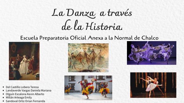 Desde el inicio de los tiempos, la danza ha formado parte de la historia de la humanidad. Los primeros indicios de la danza se hallan en pinturas rupestres de hasta 10.000 años de antigüedad, donde es posible evidenciar a personajes danzantes por motivos ritualistas o religiosos.