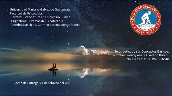 TEMA: Moldelos Terapeuticos y sus Conceptos Basicos. Nombre: Wendy Analy Alvarado Rubio. No. De Carnet: 3019-20-16640