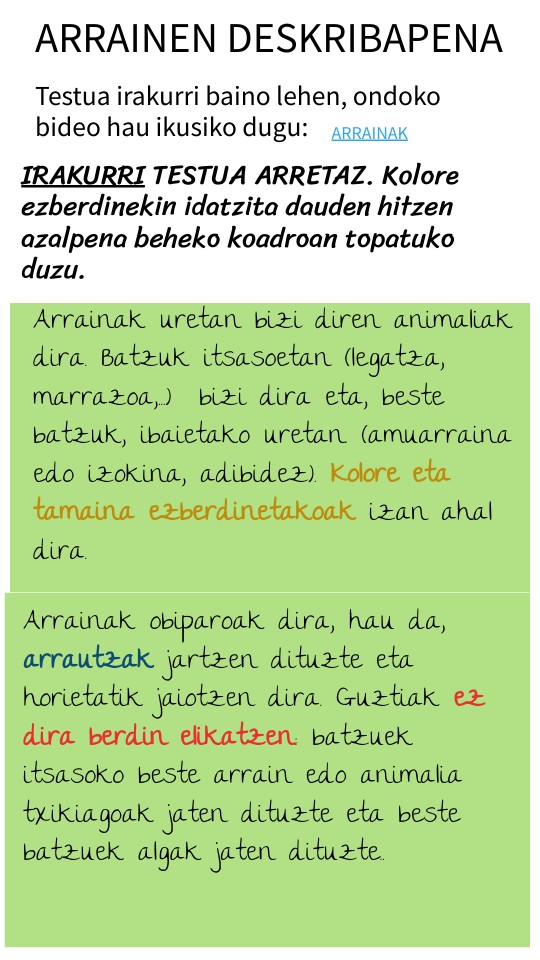 IRAKURRI TESTUA ARRETAZ. Kolore ezberdinekin idatzita dauden hitzen azalpena beheko koadroan topatuko duzu.