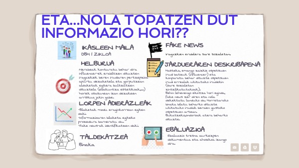 -Bilaketak modu eraginkorrean egiten daki. -Informazioaren bilaketa egiteko prozedura barneratu du. -Fake news-ak identifikatzen daki.