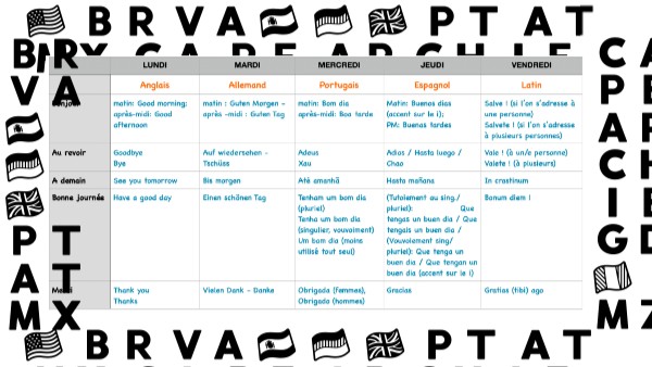Bonjour Au revoir Merci LANGUES