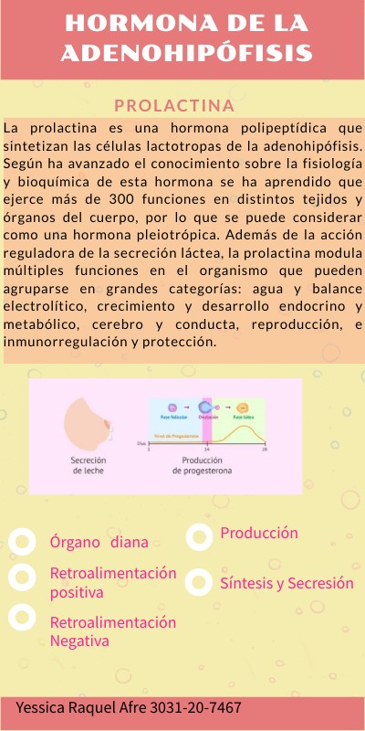 La prolactina es una hormona polipeptídica que sintetizan las células lactotropas de la adenohipófisis. Según ha avanzado el conocimiento sobre la fisiología y bioquímica de esta hormona se ha aprendido que ejerce más de 300 funciones en distintos tejidos y órganos del cuerpo, por lo que se puede considerar como una hormona pleiotrópica. Además de la acción reguladora de la secreción láctea, la prolactina modula múltiples funciones en el organismo que pueden agruparse en grandes categorías: agua y balance electrolítico, crecimiento y desarrollo endocrino y metabólico, cerebro y conducta, reproducción, e inmunorregulación y protección.