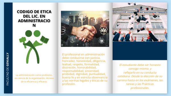 El profesional en administración debe conducirse con justicia, honradez, honestidad, diligencia, lealtad, respeto, formalidad, discreción, honorabilidad, responsabilidad, sinceridad, probidad, dignidad, puntualidad, buena fe y en estricta observancia a las normas legales y éticas de su profesión.