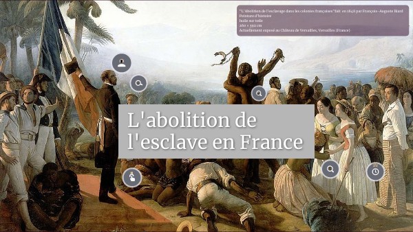 "L'Abolition de l'esclavage dans les colonies françaises"fait en 1848 par François-Auguste BiardPeinture d'histoire huile sur toile 260 × 392 cm Actuellement exposé au Château de Versailles, Versailles (France)