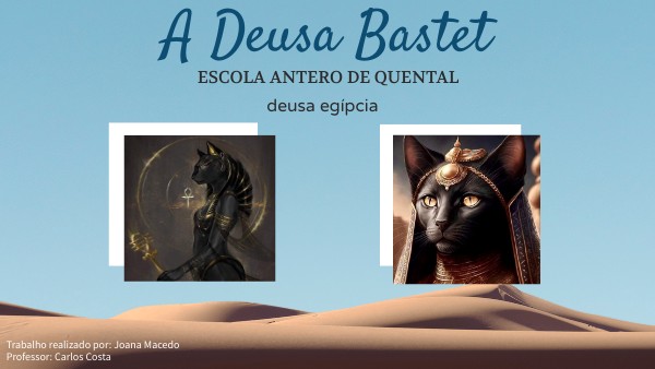 A Deusa Bastet, mais conhecida como deusa-gato, foi a deusa da fertilidade, da reprodução, da dança e do amor. Era casada com Ptah e teve um filho, cujo nome foi Mihos (deus-leão), alternativamente consideravam-na também mãe de Horus e Nefertum. É representada com um cetro e uma cabeça de gato,que se identifica com o mor e quando tencionava destacar o caráter da fertilidade, correspondia-se a deusa rodeada de pequenos gatos.