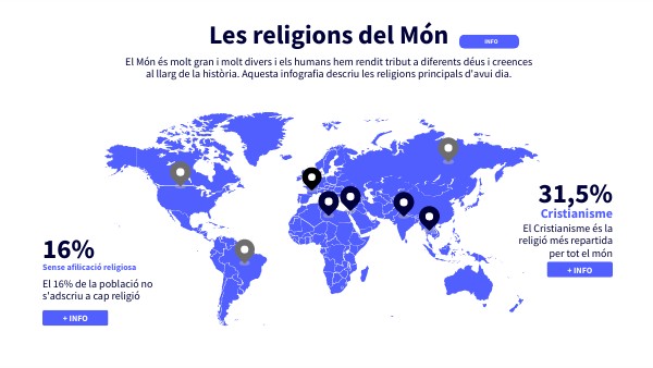 El Món és molt gran i molt divers i els humans hem rendit tribut a diferents déus i creences al llarg de la història. Aquesta infografia descriu les religions principals d'avui dia.