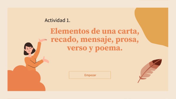 Elementos de: Carta, recado, mensaje, prosa, verso y poema.