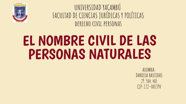 UNIVERSIDAD YACAMBÚ FACULTAD DE CIENCIAS JURÍDICAS Y POLÍTICAS derecho civil personas