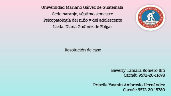 Universidad Mariano Gálvez de Guatemala Sede naranjo, séptimo semestre Psicopatología del niño y del adolescente Licda. Diana Godínez de Folgar