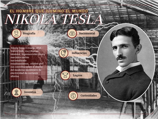 Nikola Tesla (Croacia, 1856 - Nueva York, 1943)fue un inventor, ingeniero eléctrico y mecánico serbio nacionalizado estadounidense, célebre por sus contribuciones al diseño del moderno suministro de electricidad de corriente alterna.