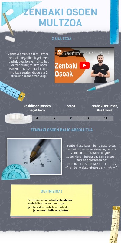 Zenbaki arrunten N multzoari zenbaki negatiboak gehitzen badizkiogu, beste multzo bat lortzen dugu; multzo horri Matematikan zenbaki osoen multzoa esaten diogu eta Z letrarekin izendatzen dugu.