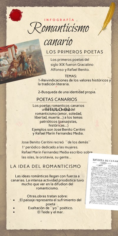 Las ideas románticas llegan con fuerza a canarias. La intensa actividad priodistica tuvo mucho que ver en la difudion del romanticismo. Otras obras tratan sobre: