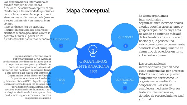 Las organizaciones internacionales pueden cumplir determinadas funciones, de acuerdo al espíritu al que obedecen y a las necesidades puntuales de sus Estados miembros, procurando siempre una acción concertada (aunque a veces unilateral) y en torno al bien común. Resolución pacífica de disputas. Regulación conjunta del desarrollo científico-tecnológicoLucha contra la pobreza. Limitar el poder de los Estados.Propiciar acuerdos económicos.